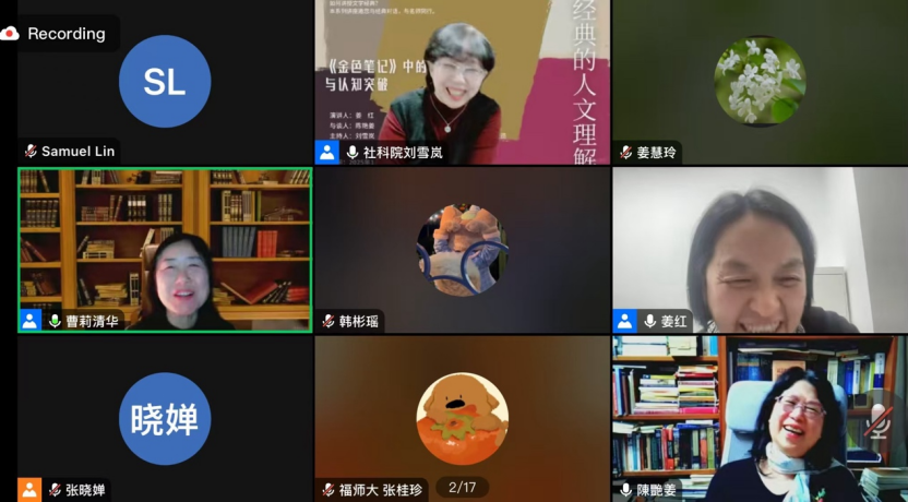 2025年1月3日下午,清华大学“英美文学经典的人文理解”系列讲座第三十六讲顺利举办。北京外国语大学外国文学研究所姜红教授以“《金色笔记》中的写作、对话与认知突破”为题进行演讲。本次讲座线上开展,吸引了校内外260余名师生聆听讲座并参与讨论。讲座由中国社会科学院外国文学研究所刘雪岚副研究员主持,高雄中山大学陈艳姜副教授担任与谈人。
