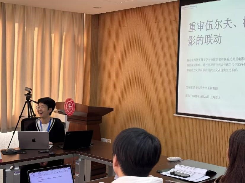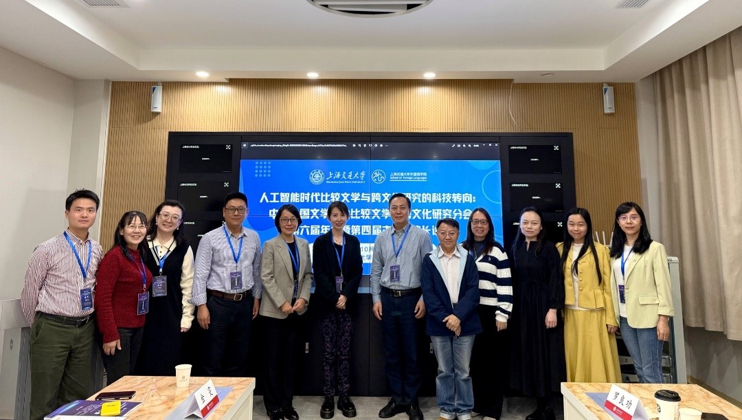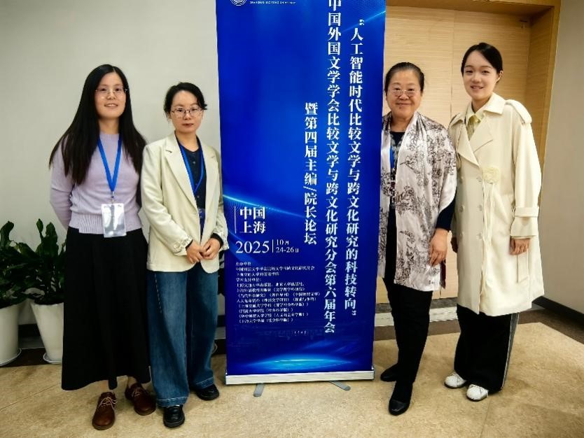 2025年10月25-26日,“人工智能时代比较文学与跨文化研究的科技转向”中国外国文学学会比较文学与跨文化研究分会第六届年会暨第四届主编/院长论坛在上海交通大学顺利举行。本次论坛由中国外国文学学会比较文学与跨文化研究分会和上海交通大学外国语学院主办,会议共设有15场主旨发言、一场特邀作家演讲、一场主编论坛、12个平行分论坛和8个研究生分论坛。清华大学外文系王敬慧教授、张叶鸿副教授、沈安妮副教授、吴娟娟助理教授与本科生纪懿桐在会议上参加了学术交流。