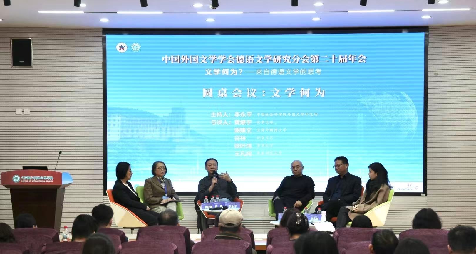 10月19日上午的圆桌会议由中国外国文学学会德语文学研究分会会长、中国社会科学院外国文学研究所研究员李永平主持。北京大学黄燎宇教授、上海外国语大学谢建文教授、北京大学谷裕教授、清华大学张叶鸿副教授及华东师范大学王凡柯副教授围绕“文学何为”主题展开深度对谈。嘉宾们从文学学科的核心地位、数字化语境下的人性复杂性、研究者的精神姿态及方法论革新等方面展开讨论,思想交锋兼具学理厚度与现实关怀。