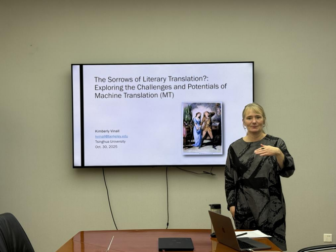 2025年10月30日,美国加州大学伯克利分校语言中心执行主任金伯莉·维纳尔应邀到清华大学外文系作学术讲座,讲座主题为“文学翻译之忧:机器翻译的挑战与潜能”。校内外师生共同聆听讲座并就相关问题展开深入讨论。