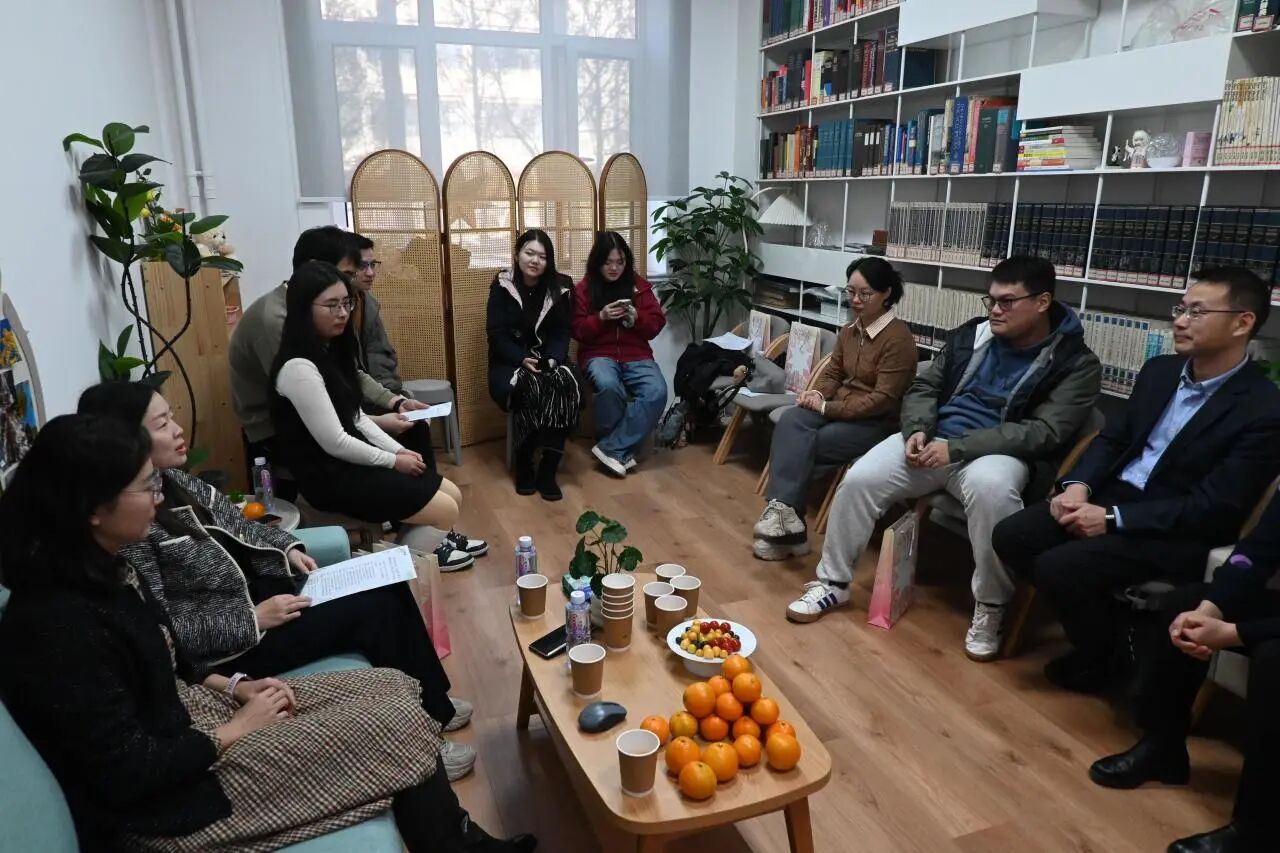 2025年11月25日,外文系清心之家“文南心语”心理空间启用仪式暨师生心理工作交流会在文南楼106室顺利举行。心理中心主任阎博,教师钟姝、尼格拉,外文系党委书记汪晖、党委副书记郑文博、学生组组长吴娟娟、研工组组长贾岩,以及尹莉、胡笑适等多位研究生导师和本科生班主任代表,多名辅导员和研究生德育助理共同参加了本次活动。活动由贾岩主持。