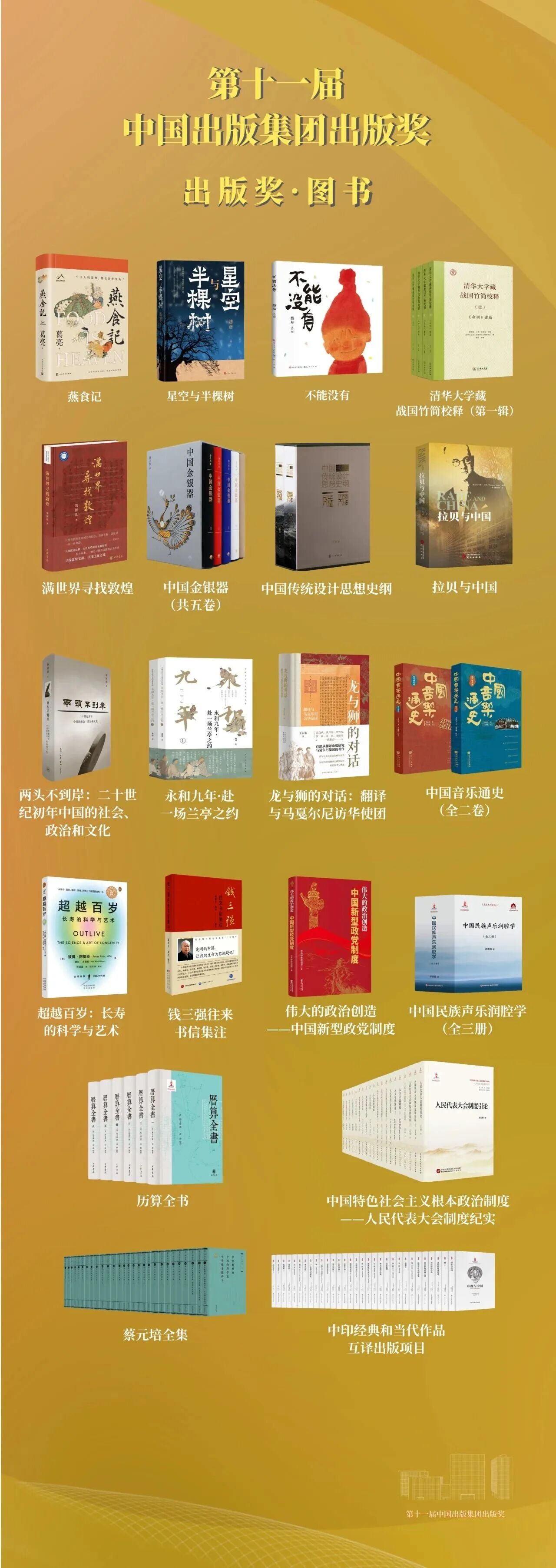 中国出版集团出版奖是该集团每三年评选一次的重要奖项。本届评奖工作自2025年7月启动,历时四个多月,从中国出版集团2022年至2024年出版的3万余种出版物中,精选出90种精品力作,其中图书类出版奖20种。这些获奖出版物紧扣时代脉搏,彰显主流价值,在传播党的创新理论、巩固壮大主流思想舆论、弘扬社会主义核心价值观、构建更有效的出版国际传播体系等方面发挥了积极作用,作出了突出贡献。评审工作秉持专业、公正原则,特邀出版界资深专家、知名学者、媒体代表等组成评审委员会。通过专项推荐、小组评议、大会合议等多轮深入研讨,最终以无记名投票方式产生获奖建议名单。评委普遍认为,获奖作品充分体现了各出版单位的品牌特色,具有较高学术水平和文化积累价值,集中展现了出版“国家队”的深厚底蕴与创新活力。