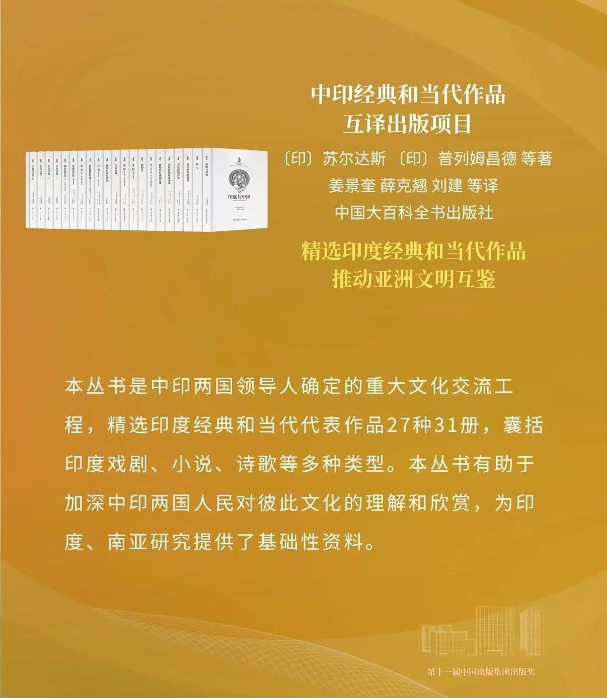 近日,第十一届中国出版集团出版奖评选结果揭晓。由清华大学外国语言文学系教授、国际与地区研究院院长姜景奎主持的“中印经典和当代作品互译出版项目”喜获中国出版集团出版奖(图书类)。