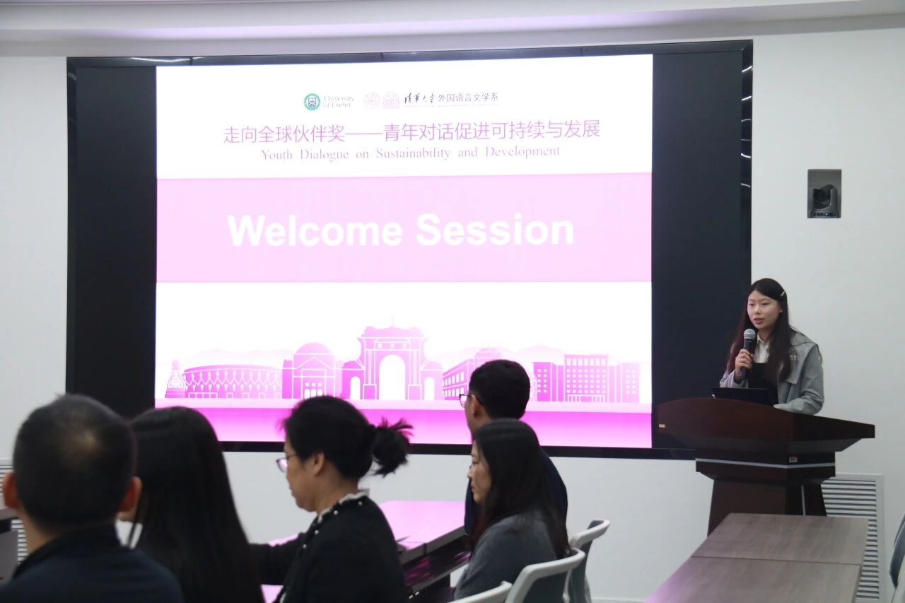 2025年12月12日,走向全球伙伴奖——青年对话可持续与发展项目开幕式在文南楼116室顺利举行。埃克塞特大学协理副校长李利、外文系主任吴霞、党委书记汪晖、副主任高阳、以及外事干事沙克尔江老师出席本次活动。来自北京大学、清华大学、复旦大学、北京外国语大学、上海外国语大学,以及英国牛津大学、伦敦政治经济学院、埃克塞特大学等中英高校的35名学员,与清华大学外文系的18名志愿者现场参与本次活动。活动由外文系本科生校语主持。
