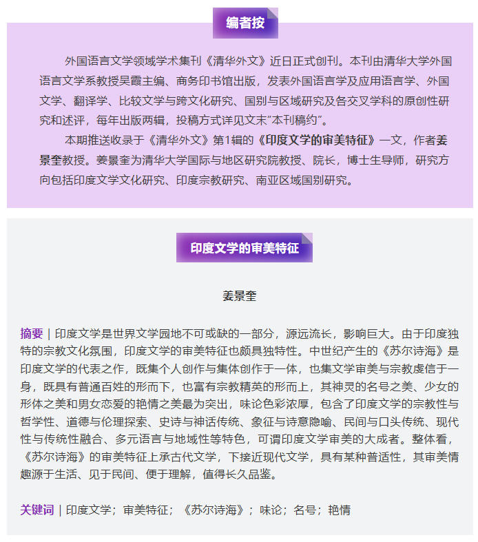 《清华外文》第1辑 | 姜景奎:印度文学的审美特征