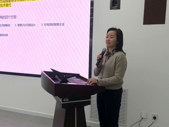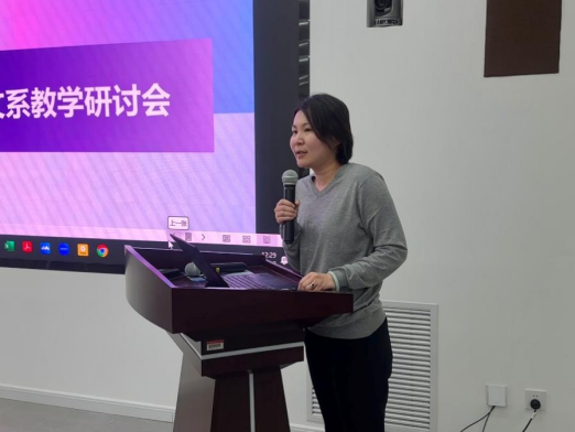 会上,张亦凝首先对外文系整体教学工作进行了概述。她围绕课程体系建设、教学质量保障、课程思政建设以及AI赋能教学改革等重点方向,介绍了外文系在整体规划与实践推进层面的工作思路。在AI赋能教学方面,张老师简要介绍了外文系依托校内资源推进的智能教学改革探索,包括学科知识引擎建设、教学指令库、智能学伴、教学智能体与AI课程的初步应用。她指出,外文系正探索以课程资源整合和教学经验沉淀为基础,逐步构建更加结构化、智能化的教学支持体系。