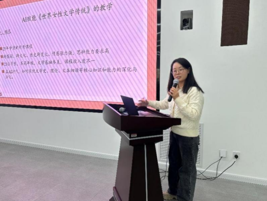 吴娟娟老师围绕英语专业本科生课程《世界女性文学传统》分享了其在文学类课程中的教学实践探索。吴老师介绍了该课程如何通过系统梳理不同文化语境中的女性文学文本,引导学生理解女性写作在文学史中的独特位置与思想价值。在教学过程中,课程结合AI工具对文学文本进行背景信息补充、主题线索梳理与跨文本关联分析,帮助学生在有限课堂时间内更高效地把握作品脉络。
