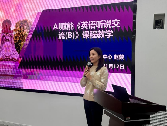 语言中心赵燚老师围绕公外课程《英语听说交流(B)》,分享了AI技术课程中的应用探索。赵老师重点介绍了在课堂与课后训练中使用“豆包”等大语言模型,辅助学生开展情景对话、角色扮演与口语表达练习的具体做法。通过将听说任务拆解为可反复练习的对话单元,并引导学生与AI进行多轮互动,课程有效降低了学生开口表达的心理压力,增加了语言输入与输出的频率。赵老师指出,AI在听说教学中的价值在于为学生提供稳定、可控的练习环境,但教师仍需通过任务设计与课堂引导,帮助学生将练习结果转化为真实交流能力。