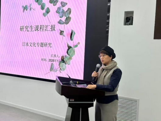 随后,孙彬老师围绕研究生精品课程《日本文化专题研究》的建设经验进行了分享。孙老师从课程目标与内容结构出发,介绍了课程如何以国别与区域研究为视角,引导学生通过文本研读、理论分析与跨文化比较,深化对日本文化及其与中国文化关系的理解。她强调,课程注重培养学生的批判性思维与学术研究能力,并在教学过程中有机融入课程思政要素,引导学生在“以他者观照自我”的过程中形成更为自觉的文化立场。