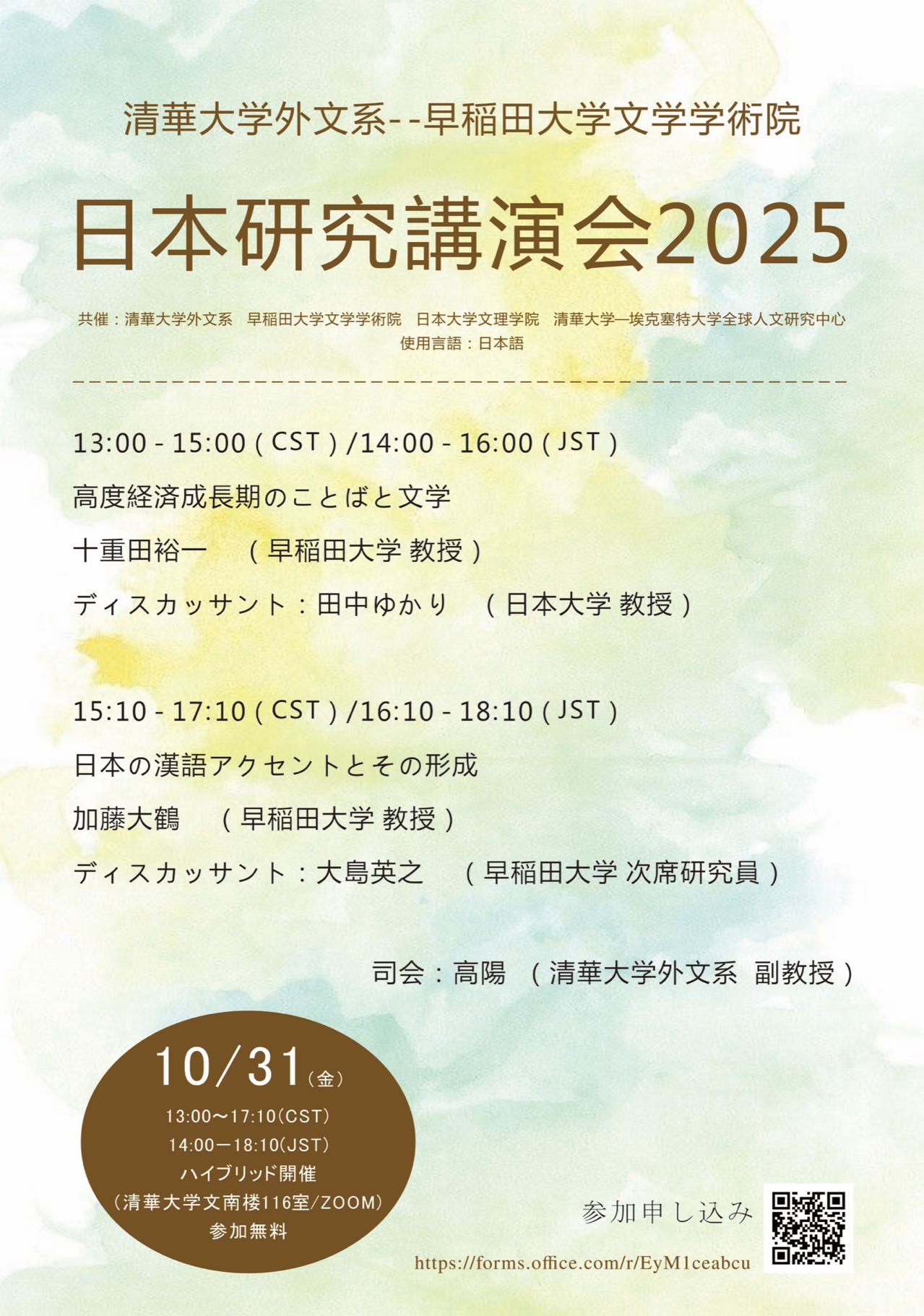 清华大学外文系--早稻田大学文学学术院 日本研究讲演会2025