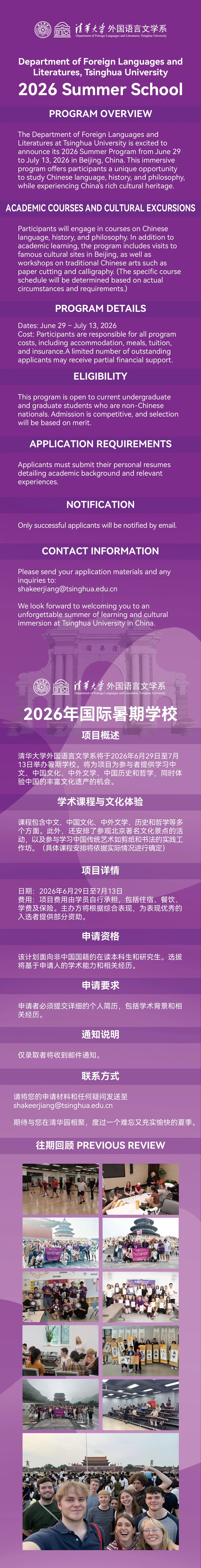 清华大学外文系2026年国际暑期学校招生公告|Admissions Open: DFLL,THU Summer School